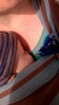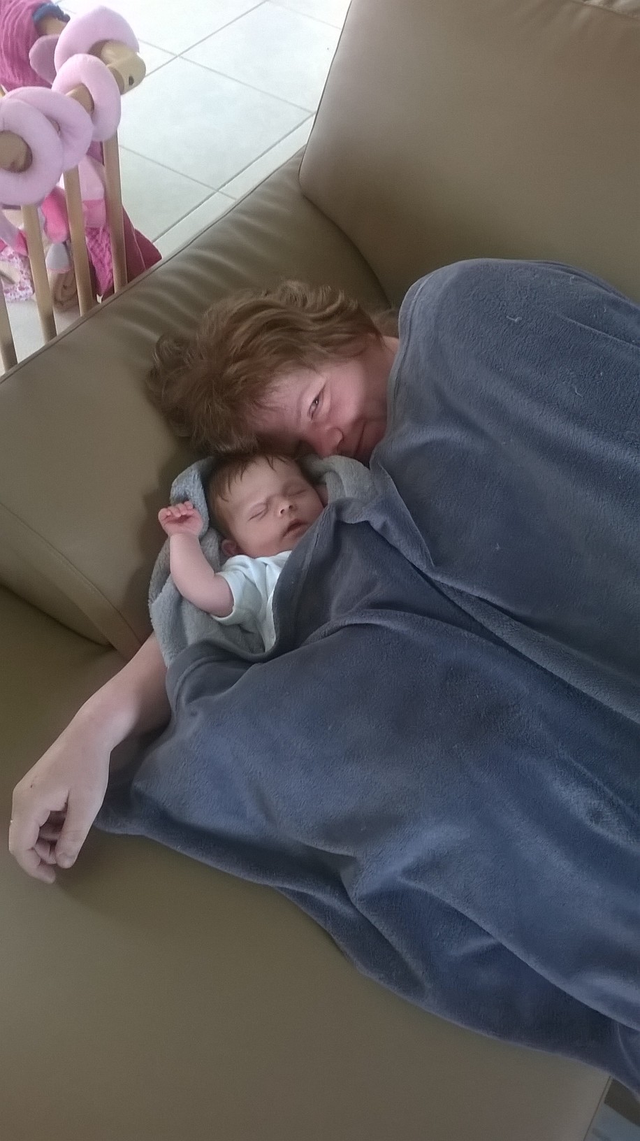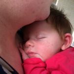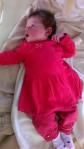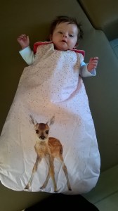 Deze foto werd genomen in mama’s en papa’s bed.  Mama had je net melk gegeven in bed en je lekker ingeduffeld in de tetradoek.  Je was zo dichtbij mama in slaap gevallen.