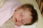 Jouw eerste nacht in een eigen bedje (in het ziekenhuis)… Dit vond je echt niet fijn!  Je wou dan ook pas slapen nadat de vroedvrouw je bij mama in het bed had gelegd.  Eens terug dichtbij mama voelde je jezelf precies terug veilig genoeg om naar dromenland te reizen.  Ontroering bij mama… nog geen 24 uren oud en al zo weten wat je wil!