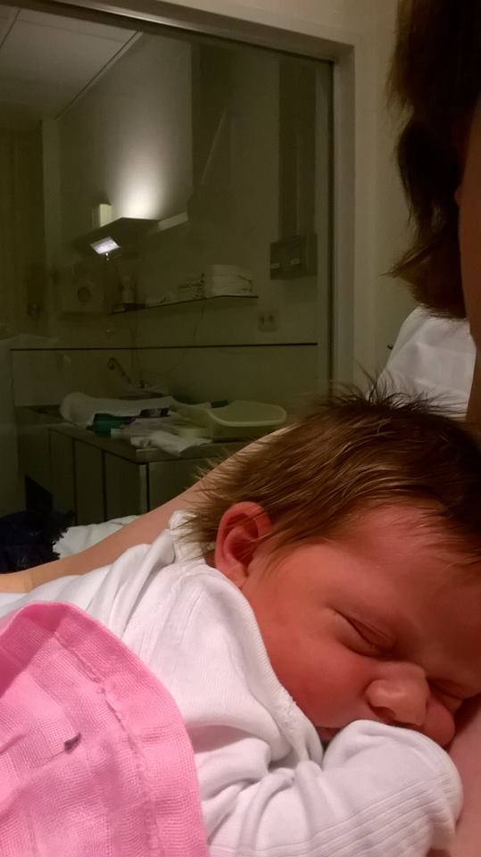 Ons meisje ligt nu op mijn borst te slapen.  Wat hebben we toch een prachtige dochter!!!  Ik heb nu 2 grote liefdes in mijn leven: jij en Linde!  Schat, ik kan niet in woorden uitdrukken hoe gelukkig ik mij voel.  Ik heb soms zin om te huilen, maar echt omdat ik zo’n intense liefde voel  Wij houden van jou.