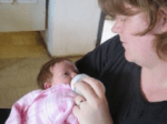 De eerste nacht probeerde mama jou te voeden via de borst van 19.30 tot 03.00 en de tweede nacht probeerden we dit nogmaals van 19.00 tot 01.00.  Je bleef echter huilen.  Jij had de juiste zuigreflex niet en mama had geen ideale boezem om jou te helpen.  De vroedvrouw gaf mama dan ook op zondagnacht het advies om te kolven, zodat jouw honger kon gestild worden en mama wat rust kon nemen.