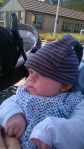 We konden dan ook niet nalaten om oma’s cadeautje al vlug te passen na jouw geboorte: