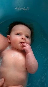 –  Je geniet van het verzorgd worden.  Zo ga je graag in bad en vind je het niet erg als mama je andere kleertjes aandoet.  Zelfs een poepsnoepje vind je niet erg.  Gelukkig, want het is al een paar weken dat je spontaan geen kaka meer wenst te doen, dus een poepsnoepje wordt regelmatig gebruikt.  Ook heb je een droge huid, maar je glimlacht als mama olie in jouw badje doet en je glimlacht nog meer als mama je inwrijft met speciale voedende crème.  Wat betreft jouw stoelgang zegt de pediater gelukkig dat mama zich geen zorgen moet maken.  Dit zou vanzelf terug in orde komen… Gelukkig, want mama vindt de poepsnoepjes zelf niet zo leuk.